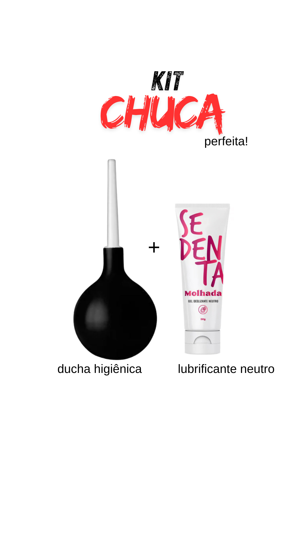 O Kit chuca perfeita é ideal para te proporcionar mais segurança e conforto naquele momento especial para o casal, ele foi minuciosamente escolhido por nossas consultoras. O kit é composto por 1 ducha higiênica e 1 gel lubrificante neutro.